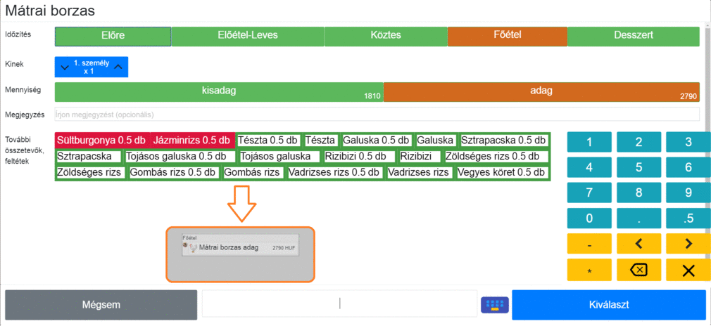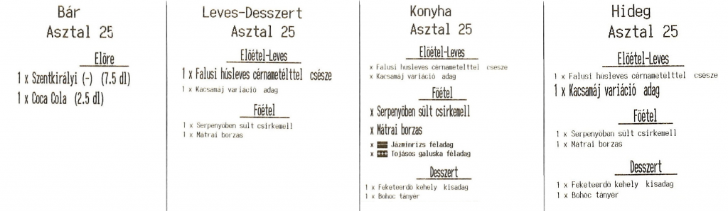 Az étlapban megadható, hogy alapértelmezetten mely fogáshoz tartozik, de ez könnyen fölülbírálható, például, amikor egy levest főételként kérnek.