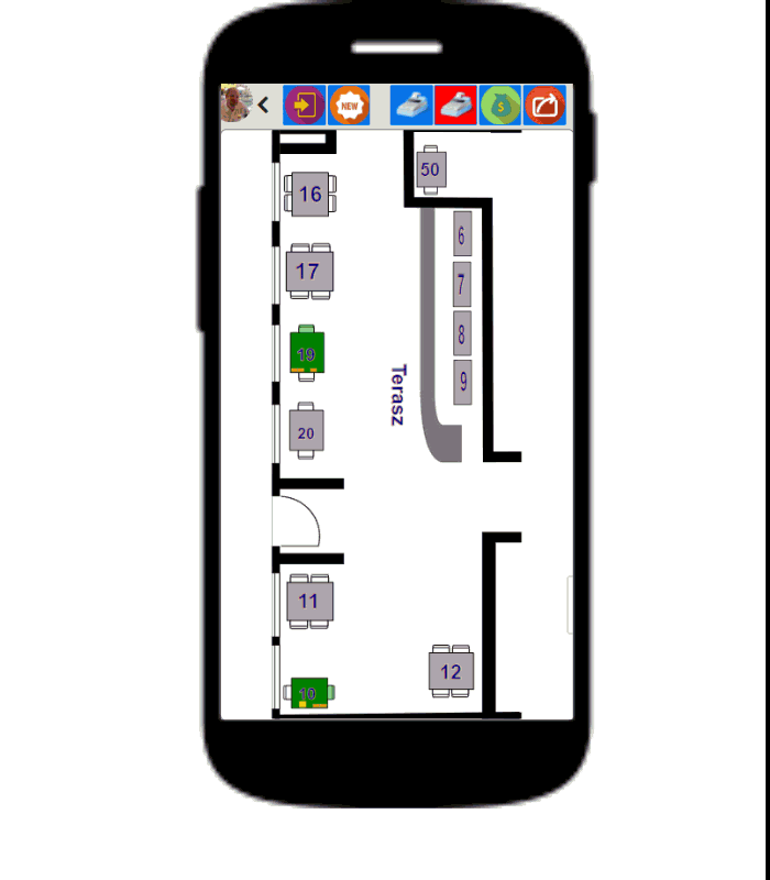 Nagy területű éttermeknél lehetőség van az asztaltérképet kisebb területekre, termekre osztani és arra ráközelíteni.