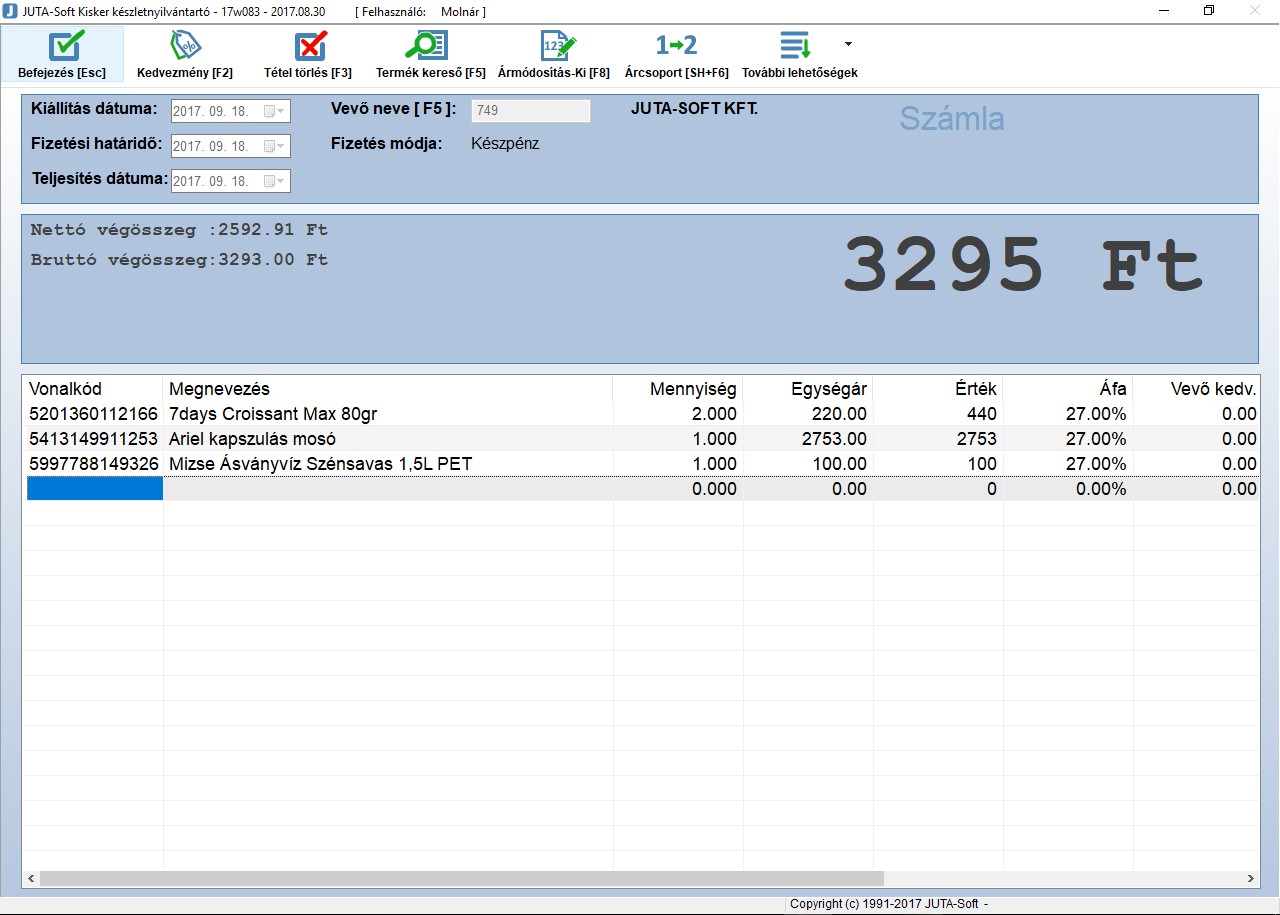 Kiskereskedelmi nyilvántartó és számlázó rendszerünk fejlesztésénél a legfontosabb szempontjaink a következők voltak: