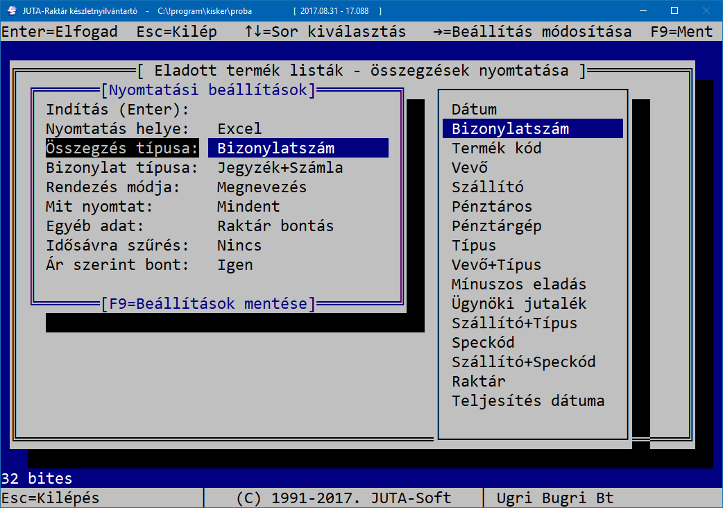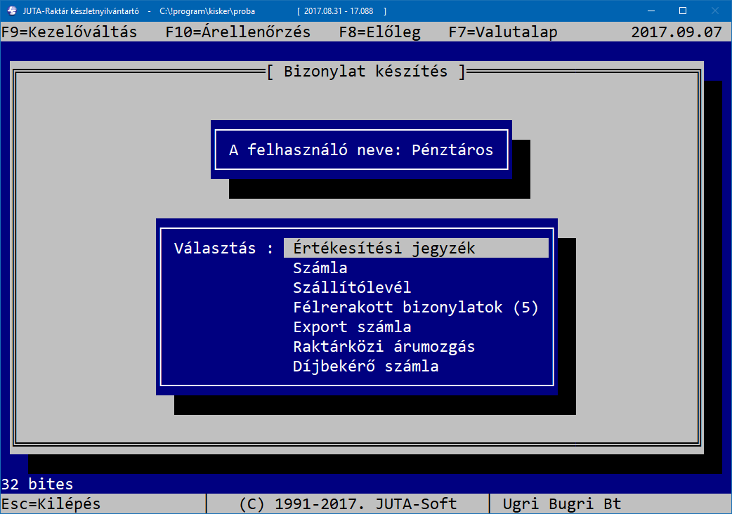 A Juta-Soft Kft. által forgalmazott JUTA-Raktár raktárkészlet nyilvántartó és számlázó program megfelel a 23/2014. (VI. 30.) NGM rendeletben előírtaknak és a 47/2007. (XII. 29.) PM rendelettel módosított 24/1995. (XI. 22.) PM rendeletben, valamint a 2007. évi CXXVII. törvényben előírtaknak, mely szerint a számítógéppel előállított számla, amelynek szigorú számadás alá vonása megvalósul oly módon, hogy a gépi program kihagyás és ismétlés nélkül biztosítja a sorszámozást, és a másolatok alapján a hiánytalan elszámolás biztosított. A számlázó program a számla sorszámokat automatikusan generálja, azokat utólag módosítani nem lehet, a megírt számlák nem módosíthatók, továbbá a 2016. január 1-jétől hatályos 11/A. § értelm ében a számlázó program olyan önálló, de a programba beépített, „adóhatósági ellenőrzési adatszolgáltatás” elnevezésű funkcióval rendelkezik, amelynek elindításával adatexport végezhető. Ez a funkció a programban NAV adatszolgáltatás menüpont alatt található.